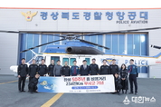 ▲경북청 참수리 헬기 사진. (대한뉴스 김기준 기자)=경상북도경찰청(청장 : 오부명 치안감) 항공대가 1975년 12월 1일 창설 이후 ‘50년 무사고 비행기록’이라는 금자탑을 세웠다. 50년 동안 12,630시간을 비행하면서 지구 둘레 58바퀴에 해당하는 234만km를 무사고로 비행한 것이다. 특히 경북경찰청은 다른 시·도 경찰청에 비해 관할구역이 넓고, 독도 및 울릉도 등 장거리 해상비행 임무가 많은 지역적 특성을 고려 했을 때 이번 무사고 비행 기록은 남다른 의미로 평가된다. 경북경찰청 항공대는 25년 이상의 비행 ․ 정비경력을 보유한 베테랑 조종사와 정비사 12명이 참수리 헬기 2대를 운용하면서 장거리 주 ․ 야간 해상비행과 우범지역 공중 순찰을 통해 도민 안전에 기여해 왔다. 올해의 경우 경북 북부지역 및 경남 산청, 대구 함지산 일대 발생한 대형산불 현장에 헬기 2대를 투입하여 산불 조기진화에 기여하고, APEC정상회의 기간 중 주요정상에 대한 공중경호 지원을 전담하여 안전하고 성공적인 행사 개최를 뒷받침한 바 있다. ▲경북청 항공대 50주년 무사고 비행 기념 사진. 경북경찰청은 ‘50년 무사고 비행 기념식’을 개최, ‘100년 무사고 비행’까지