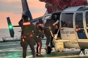 ▲포항항공대 헬기로 이송 중인 장면. (대한뉴스 김기준 기자)=동해지방해양경찰청(청장 김성종)은 1일 포항시 남구 호미곶 동방 약 167km 해상에서 손목 절단 응급환자 1명을 구조하여 병원으로 긴급이송 했다고 밝혔다. 동해해경청에 따르면 1일 오전 3시 45분께 포항시 남구 호미곶 동방 약 167km 해상에서 A호(9.77톤, 통발, 승선원 7명) 선원 B씨(남, 50대)가 양망작업 중 왼쪽 손목이 절단됐다는 신고를 접수했다. 신고를 접수한 동해해경청은 포항항공대와 경비 중인 포항해경 1510함을 현장으로 급파했다. 오전 4시 56분께 현장에 도착한 경비함정은 15분여간의 구조작업 끝에 A호에서 함정으로 응급환자를 안전하게 편승시켰다. 이어 포항해경 응급구조사가 원격의료시스템을 가동해 선원 B씨의 왼쪽 손목 인대가 붙어 있는 상태를 확인하고 소독 및 붕대 교체 등 긴급 응급조치를 실시했다. 응급환자는 어지러움증이 있었으나 혈압·맥박 이상 없이 오전 5시 48분 포항항공대 헬기를 이용해 포항경주공항으로 신속하게 이송되었다. 오전 6시 41분 포항경주공항에 도착한 포항항공대 헬기는 대기 중인 경북119특수대응단에 응급환자를 인계했고 대구C병원으로 안전하게 이송