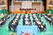 ▲함양청년회의소 ‘2026년 병오년 신년 인사회. (대한뉴스 김기준 기자)=함양청년회의소(JC)는 병오년 새해를 맞아 지난 8일 오전 고운체육관에서 ‘2026년 병오년 신년 인사회’를 개최했다. 이날 행사에는 진병영 군수를 비롯해 김윤택 군의회 의장, 김재웅 도의원을 비롯한 기관 및 사회단체 내빈과 함양청년회의소 가족, 군민 등 300여 명이 참석했다. 행사는 다볕오케스트라의 식전 공연을 시작으로 국민의례 및 내빈 소개, 신년 하례, 신년사 및 축사, 시루떡 절단, 축배 제의 순으로 진행됐다. 참석자들은 새해를 알리는 시루떡 절단식을 통해 군민과 향우들의 건강과 행복을 기원했으며, 이어진 떡국 오찬 자리에서는 새해 인사와 덕담을 나누며 함양군 발전을 위한 다양한 의견을 교환했다. 전종일 회장은 신년사를 통해 “희망찬 2026년을 맞아 마련한 신년 인사회에 많은 분이 참석해 주셔서 감사드린다.”라며 “앞으로도 청년회의소는 지역의 젊은 리더로서 지역 발전에 이바지할 수 있도록 최선을 다하겠다.”라고 말했다. 진병영 군수는 “지난 한 해 동안 군정 발전을 위해 힘을 모아주신 모든 분께 감사드린다”라며 “병오년 새해에는 더 보람 있는 한 해가 되도록 최선을 다할 것