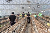 ▲농촌 일손 돕기 봉사활동 사진. (대한뉴스 김기준 기자)=안동교도소(소장 윤영주)가 지역 농촌의 인력난 해소와 수용자의 건전한 사회 복귀를 위해 발 벗고 나섰다. 안동교도소는 9월 29일, '보라미봉사단' 수형자를 중심으로 농촌 일손 돕기 봉사활동을 성공적으로 마쳤다고 밝혔다. 이번 봉사활동에는 안동교도소 보라미봉사단 수형자를 비롯해 교정협의회 회원, 농협 관계자 등 총 20명이 참여했다. 이들은 일손이 절실한 안동 지역의 한 딸기 농가를 찾아 폐작물 수거 및 처분 작업을 도왔다. 도움을 받은 딸기 농가 A씨는 "일손 부족으로 올해 농사를 포기하려 했었는데, 이번 봉사활동 덕분에 다시 딸기 농사를 시작할 수 있는 희망을 얻었다"며 깊은 감사를 표했다. 봉사에 참여한 수형자들은 직접 노동의 가치를 체험하고 지역사회의 따뜻한 배려를 느끼며 긍정적인 변화를 보였다. 한 보라미 봉사단 수형자는 "출소 후에도 꾸준히 봉사활동을 이어가겠다"는 계획을 밝혀 교정 효과에 대한 기대감을 높였다. ▲농촌 일손 돕기 봉사활동 사진. 안동교도소 윤영주 소장은 "지역사회와 함께 성장하는 것은 교정기관의 매우 중요한 역할"임을 강조하며, "앞으로도 농협 등 지역 유관기관과의 지속적