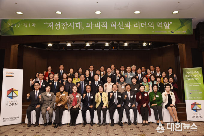 한국양성평등교육진흥원 (원장: 민무숙)은 3월 10일(금), 서울 명동 은행회관에서 윤만호 Ernst&Young Advisory 부회장 을 초청하여 “저성장시대, 파괴적 혁신과 리더의 역할” 이란 주제로 2017년 제1차 포럼 본(forum BORN, 제41회) 을 개최 하였다.
