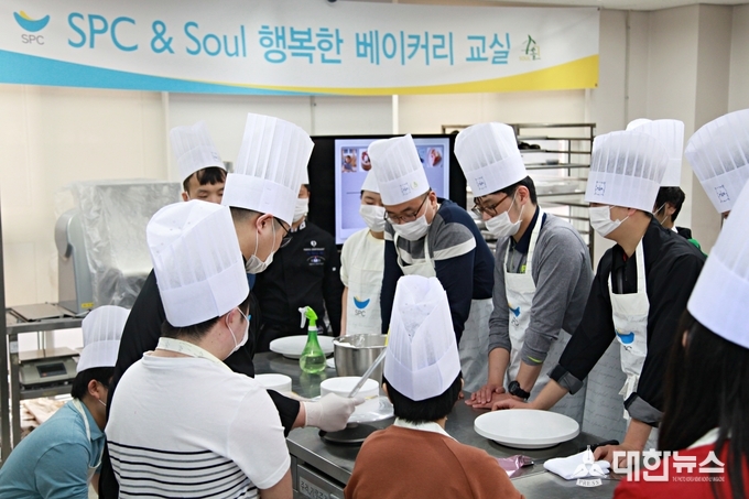 SPC그룹은 14일 경기도 고양시 장애인 제과제빵 작업장인 소울베이커리에서 장애인 학생을 초청해 ‘SPC&Soul 파티시에 직업체험 교실’을 열었다.
