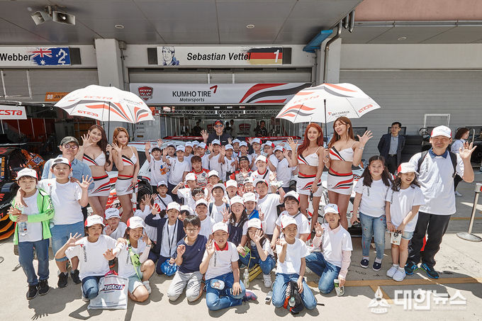 금호타이어(대표 이한섭)가 14일 전남 영암 코리아 인터내셔널 서킷(KIC)에서 광주 살레시오 초등학교 학생들을 대상으로 모터스포츠 관람 및 경기장 체험 활동을 실시했다.