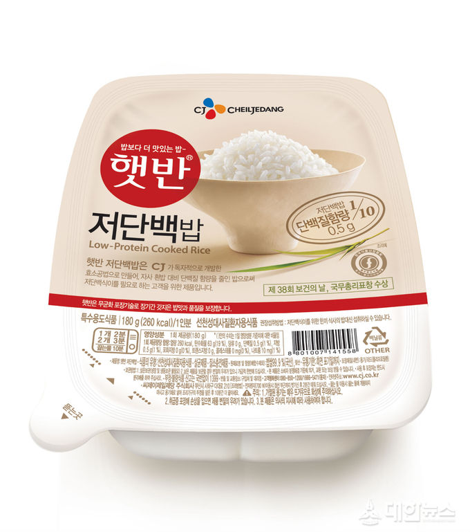 ‘햇반 저단백밥’은 일종의 재능기부형 제품이다. 체내에 단백질 대사과정에 필요한 효소들의 일부가 결핍되어 단백질이 함유된 음식을 마음껏 먹을 수 없는 희귀질환자를 위해 일반 햇반(쌀밥)에 비해 단백질 함유량을 약 10%로 낮춘 기능성 햇반이다.