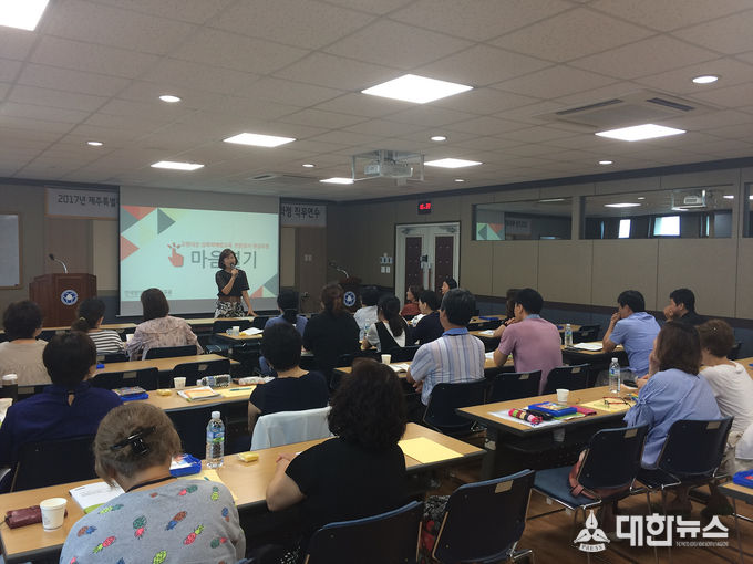 제주특별자치도교육청 지원 하에 특수분야 직무연수 과정 으로 운영되는 이번 교육과정은 기본과정-심화과정 두 단계(총 60시간)로 이루어지며, 「아동․청소년 성폭력의 특성과 예방교육 패러다임 변화」, 「성폭력 예방교육 현장 맞춤형 강의안 작성 실습」 등 교육 대상별 맞춤형 강의 기획에 필요한 교과목으로 구성 되어 있다. 집합교육 외 사이버교육·사후과제 및 최종 시연·평가를 이수한 교육생 은 향후 도내 성폭력예방교육 전문강사로 위촉 될 예정이다. 제주도 내 성폭력예방교육 전문강사로 활동하고 있는 인원은 현재 41명이다.