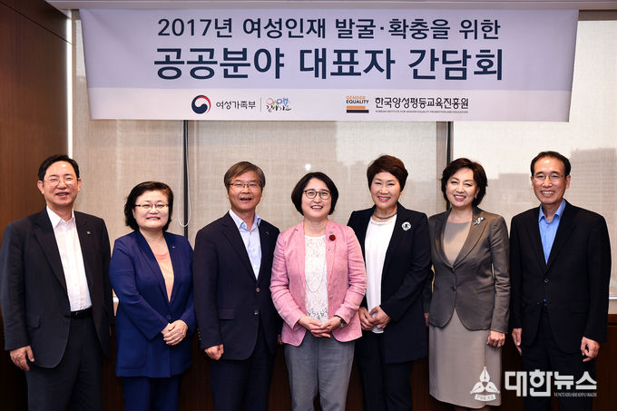 한국양성평등교육진흥원 (원장 민무숙) 은 2017년 8월 31일(목) 은행회관 뱅커스클럽 (서울 중구) 에서 여성인재 양성·발굴·확충을 위한 공공기관 대표자 간담회를 개최했다.