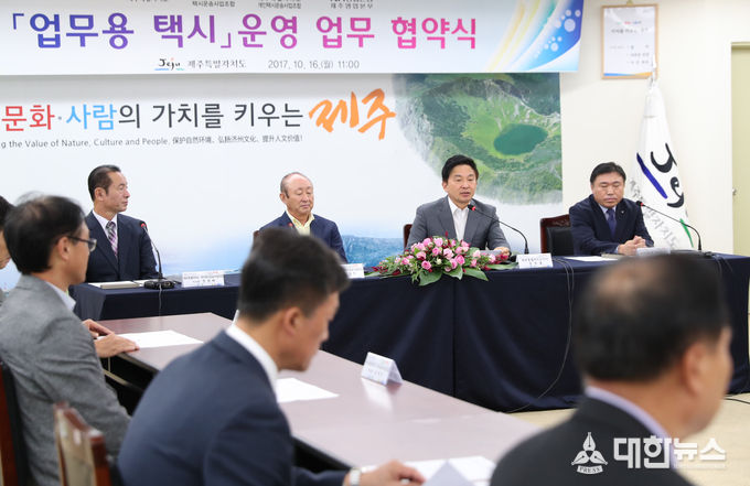 제주특별자치도가 택시업계의 활성화와 공직자들의 출장 편의지원을 위한 업무용 택시를 본격 도입한다. 제주도는 16일 도청 삼다홀에서 제주도택시운송사업조합, 제주도개인택시운송사업조합, NH농협은행 제주영업본부와 ‘업무용 택시 운영 업무협약’을 체결하고, 택시 운영을 위한 역할을 구체화했다. 공무원들이 택시를 이용해 공무를 수행할 수 있도록 하기 위해서다.