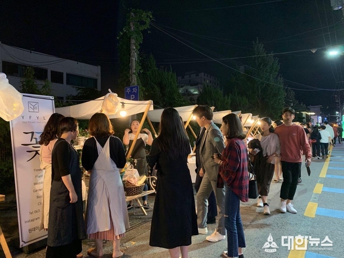 아기자기한 카페와 맛집들이 들어서면서 상권이 되살아난 전주객사길(객리단길) 도로 위에서 청년들이 준비한 문화행사가 펼쳐졌다.