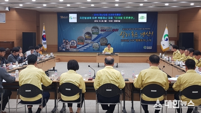 경산시(시장 최영조)는 28일 시청 대회의실에서 재난대응 안전한국훈련 토론기반 훈련을 실시했다.