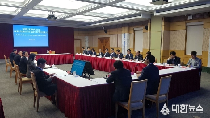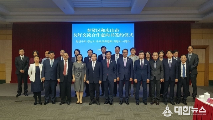 경산시(시장 최영조)와 중국 상하이시 펑센구(구장 궈팡)가 경제, 문화, 교육, 스포츠 등의 교류 협력이 담긴 우호교류협력 의향서를 11월 2일 상하이시 펑센구 회의센터에서 체결했다.