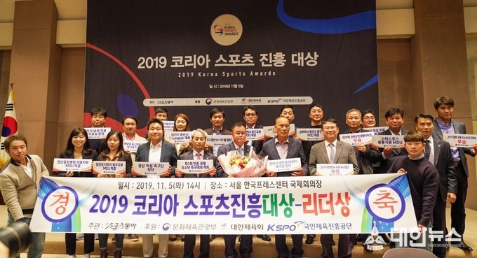 경산시축구협회(회장 김만식)는 그동안 국내 스포츠산업 시장의 발전과 진흥에 공헌한 개인과 단체가 선순환의 발전을 할 수 있도록 지원하기 위해 스포츠동아에서 주최하고 문화관광체육부, 대한체육회, 국민체육진흥공단에서 후원하는 2019 코리아 스포츠진흥대상에서 리더상을 수여받았다.