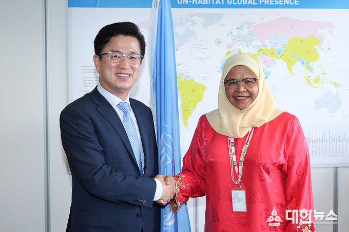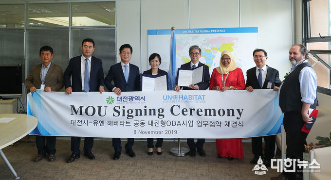 허태정 시장은 더반 방문에 앞서 첫 공식일정으로 8일 케냐 수도 나이로비 유엔해비타트 본부에서 메이무나 모우드 셔리프 유엔해비타트 사무총장을 만나‘대전시-유엔해비타트 공적 개발원조(ODA) 사업’추진을 위한 양해각서(MOU)를 체결했다.