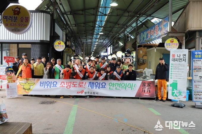 영주소방서(서장 윤영돈)는 지난 15일 신영주종합시장에서 영주시청 및 안전모니터링 요원 등 65명이 참여한 가운데 화재위험이 증가하는 불조심 강조의 달을 맞아 국민적 참여와 공감대를 이끌어 내기위한‘화재예방 캠페인’을 실시했다고 밝혔다.