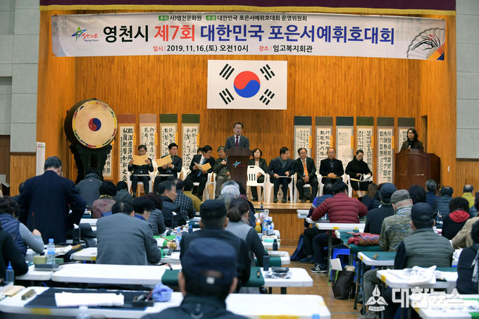 영천시(시장 최기문)는 포은 정몽주 선생의 숭고한 정신을 기리고 한국서예문화의 저변확대를 위해, 대한민국 포은서예휘호대회 운영위원회(운영위원장 박세호)와 영천문화원(원장 정연화)이 주관한 제7회 대한민국 포은서예휘호대회를 지난 16일 영천 임고면 복지회관에서 개최했다.