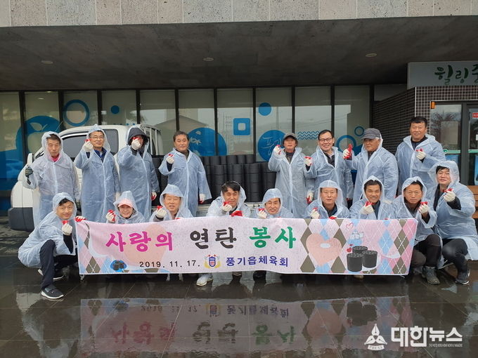 이번 행사는 풍기읍체육회 임원 및 이사 등 20여명이 참여해 관내 저소득층 3가구에 250장씩 총 750장의 연탄을 직접 배달했고 16일(토)에는 연탄업체를 통해 750장의 연탄을 3가구에 전달했다.