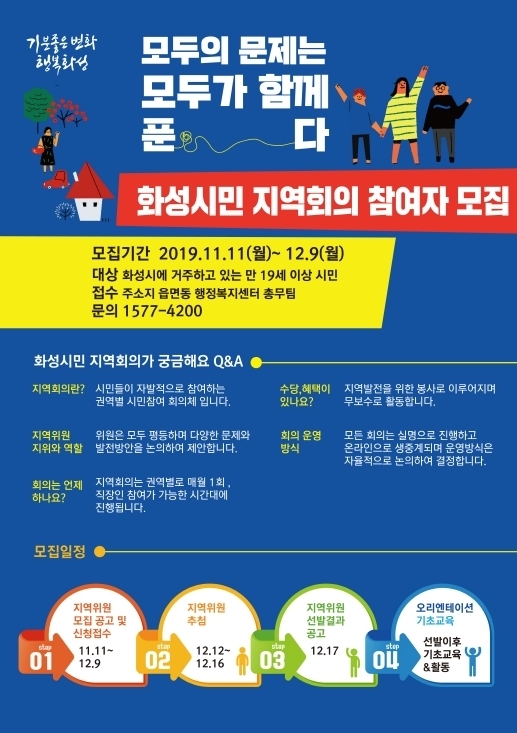 민영섭 지역특화발전과장은 “전국 최초로 시행하고 있는 화성시민 지역회의는 기존에 없던 새로운 가치를 만들어 내고 있다”며, 기분 좋은 변화 행복한 화성시를 만드는 그 과정에 함께할 시민 여러분의 많은 관심과 참여를 바란다”고 말했다.