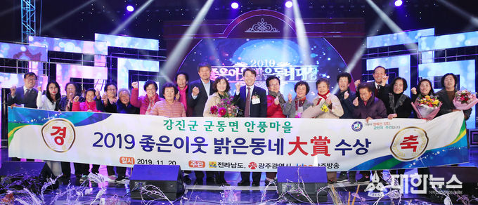 지난 20일 광주 김대중컨벤션센터에서 열린 ‘2019 좋은이웃 밝은동네’ 시상식에서 강진군 군동면 안풍마을이 영예의 대상 수상과 함께 시상금 3백만 원을 수여받았다.