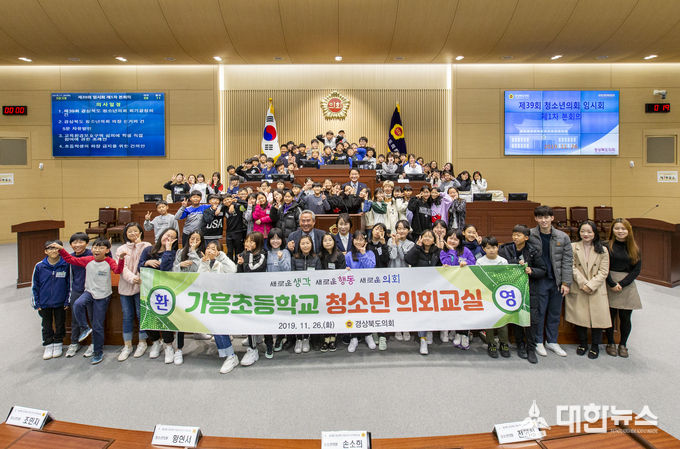 경상북도의회(의장 장경식)는 11월 26일(화) 오전 도의회 본회의장에서 영주 가흥초등학교 5학년 학생 90명을 대상으로 제39회 경상북도의회 청소년 의회교실을 개최했다.
