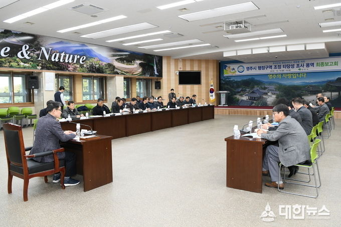 시는 12월 6일 오후2시 시청강당에서 장욱현 영주시장을 비롯한 읍면동장, 행정구역 조정 민관네트워크, 읍면동이통장협의회장 등 50여명이 참석한 가운데 ‘영주시 행정구역 조정 타당성조사 용역’ 최종보고회를 개최했다.