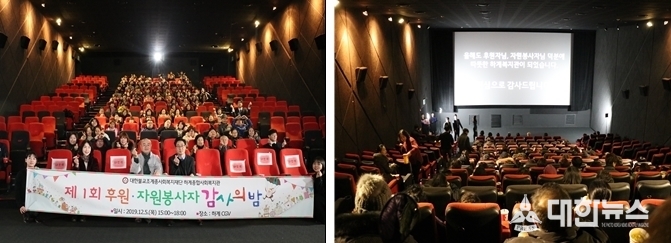 이후 영화 ‘감쪽같은 그녀’ 관람을 통해 남녀노소 울고 웃으며 감동받는 시간을 함께 하였다. 감사의 밤에 참석한 자원봉사자는 “바라고 행한 것은 아니지만 이렇게 보답을 받으니 너무 좋고 미안한 마음이다. 언제나 하계복지관을 통해 지역사회에 관심과 사랑을 전하고 싶다”고 전했다.