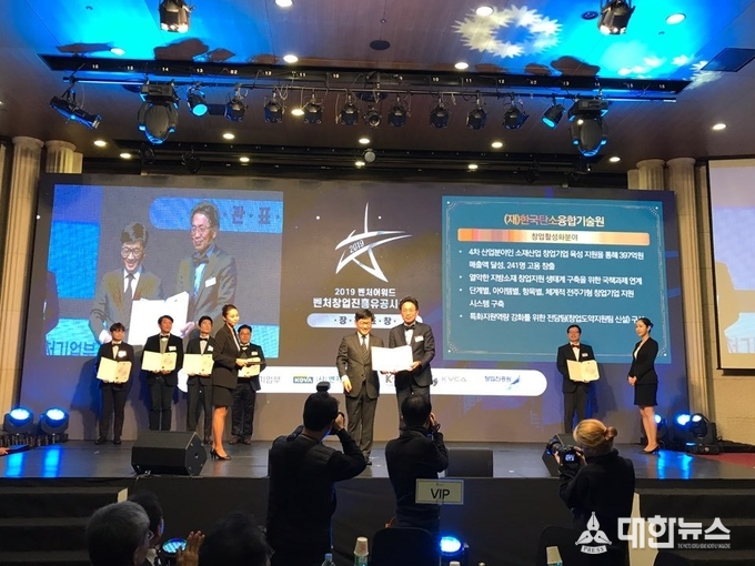 한국탄소융합기술원(원장 방윤혁, 이하 기술원)은 10일 서울 양재동 엘타워 그레이스홀에서 열린 2019 ‘벤처기업인의 밤’ 행사에서 중소벤처기업부장관상을 수상했다고 밝혔다.