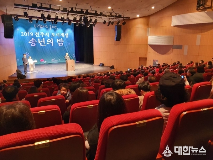시는 11일 전주한벽문화관에서 전주 곳곳에서 펼쳐지고 있는 각종 도시재생사업 현장에서 활약 중인 주민협의체, 지역공동체, 도시재생활동가, 도시재생 분야 공무원 등 250여명의 도시재생 활동가와 주민이 참석한 가운데 ‘2019 전주시 도시재생 송년의 밤’ 행사를 가졌다.