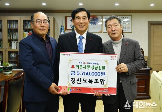 최영조 경산시장은 “어려운 농업경제 여건 속에서도 더욱 소외된 이웃과 나눔을 실천하기 위해 매년 온정의 손길을 보내준 묘목영농조합법인에 감사드리며, 앞으로 지역사회와 함께 하는 따뜻한 온정과 나눔을 실천하는 단체로 거듭나서 더불어 함께 사는 행복한 경산시가 되었으면 좋겠다”며 감사의 인사를 전했다.