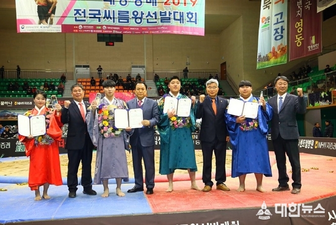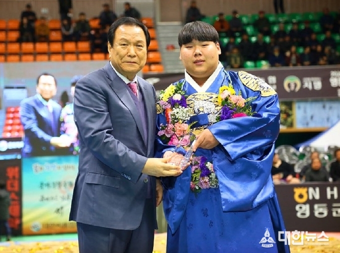 지난 13일 충청북도 영동군 영동실내체육관에서 ‘대통령배 2019 전국씨름왕선발대회’ 고등학교부·대학교부·청년부·국화급(70kg이하) 결승이 치러졌다. 가장 먼저 금메달의 승전보를 전한 것은 고등학교부 경상북도 대표 지민수다. 지민수는 결승전에서 경상남도 대표 심유빈을 만나 두 판 모두 밀어치기를 영리하게 배지기로 되치며 우승을 차지했다.