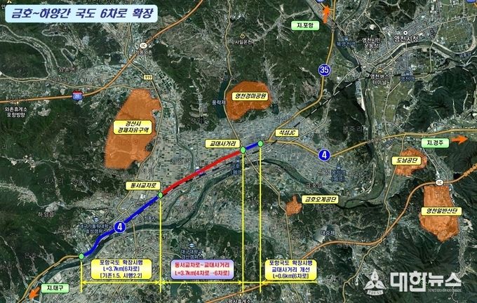 국도 4호선 금호 교대사거리에서 하양 동서교차로까지 3.7km구간은 왕복 4차로로 출퇴근시간대 상습정체 발생 지역으로 교통사고 위험이 높고 일일교통량 34,620대 수준으로 6차로 확장사업이 시급히 제기돼 왔다.