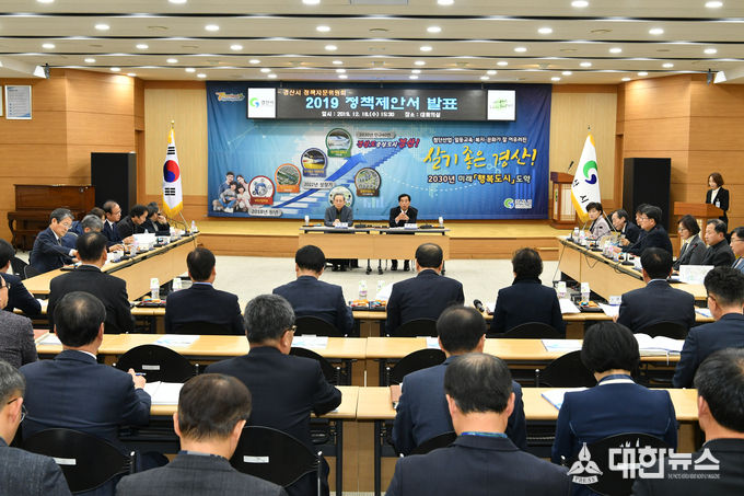 경산시(시장 최영조)는 18일 시청 대회의실에서 경산시 정책자문위원회 2019 정책제안 발표 토론회를 가졌다.