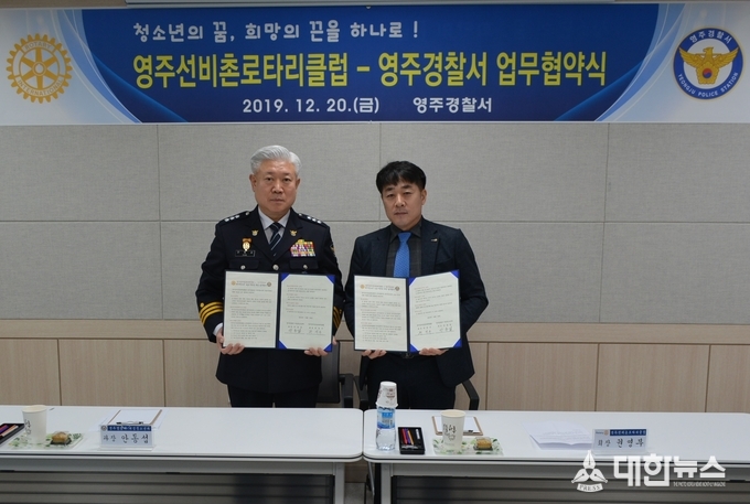 영주경찰서(총경 김상렬)는 20일 영주선비촌로타리클럽(회장 권영부, 부영전기공사대표)과 청소년 보호·지원을 위한 업무협약을 체결했다.