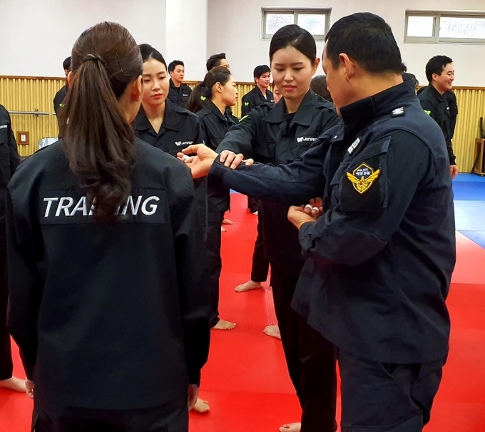 해양경찰 무도교관은 객실안전교관들이 기내 난동 발생 시 신속하고 효과적으로 진압 할 수 있도록 실제 항공기에서 사용 중인 장비를 이용한 체포술과 호신술을 비롯한 해양경찰 무도 교육을 실시했다. 이어 항공기 해상불시착 등 비상 상황시 대응능력을 키울 수 있는 해양생존훈련과 악천후, 화재 등 다양한 위험상황에서 본인과 승객의 생명을 구조하기 위한 기울어진 선박 탈출 및 화재 연기로 인해 앞이 보이지 않는 곳에서의 구조훈련도 진행했다. 특히 해양생존훈련은 실제 바다처럼 최대 2m의 파도를 일으키는 구조 훈련장에서 진행됐으며, 실제 항공기가 바다, 강에 비상 착륙했을 때를 대비하여 생존 수영, 비상탈출 훈련을 반복적으로 진행했다.