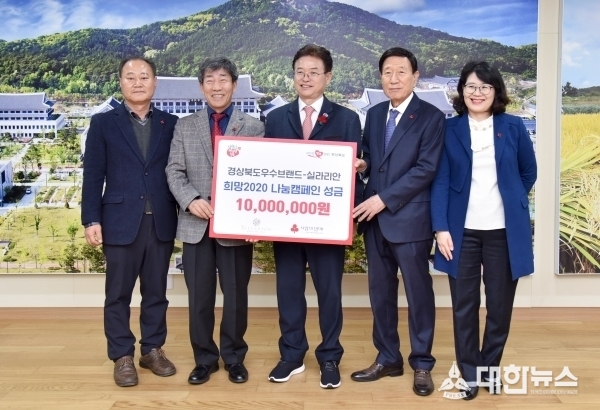 경상북도 중소기업 우수제품 공동브랜드인 실라리안의 대표들로 구성된 실라리안협의회는 30일 도청 접견실에서 연말 이웃돕기 성금 1천만 원을 전달했다.