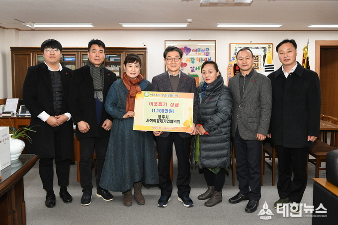 영주시 사회적경제기업협의회(대표 남옥선)는 31일 영주시청을 방문해 이웃돕기 성금 1,100만원을 기탁했다.
