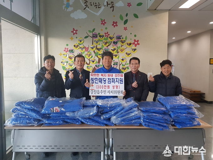 지난 12월 31일 강진읍주민자치위원회(위원장 손홍식)에서 매서운 한파를 이겨낼 겨울용 방한점퍼 41벌을 어려운 이웃에게 전달해 달라며 강진읍사무소에 기탁해 지역사회에 훈훈한 감동을 주었다.