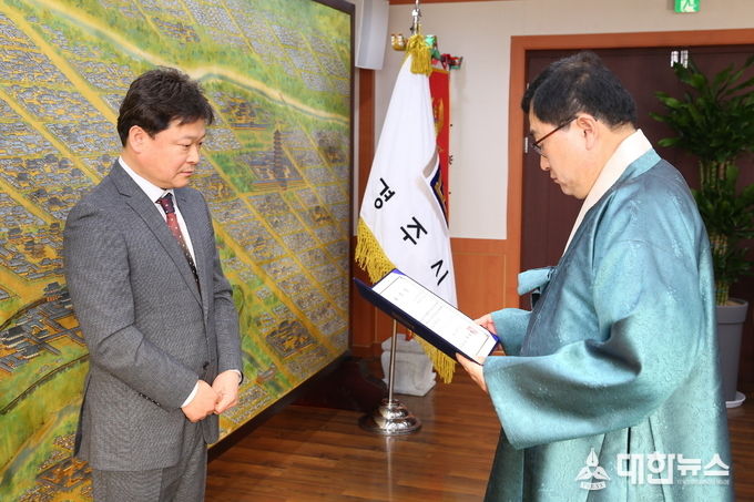 주낙영 경주시장은 3일 대외협력실에서 신임 시립신라고취대 박경현(남, 54) 예술 감독을 임명하고 위촉장을 수여했다.