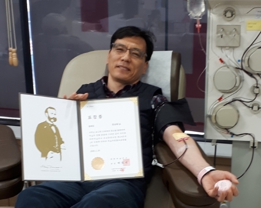 헌혈유공자 명예장은 대한적십자사가 100회 이상 헌혈한 자에게 수여하는 훈장과 증서다. 1990년 첫 헌혈을 시작해 100회를 이어온 정 경감(승)은 육군으로 23년간 군 복무 후 지난 2014년 해양경찰 항공 경위로 들어왔다. 입직 이후 항공대 조종사, 해양경찰청 항공과·경비과 등에서 근무하며 국민의 해양안전을 위해 힘써왔다. 그는 헤모글로빈 수치와 혈압 기준치를 통과해야 하는 헌혈 조건에 부합하기 위해 끊임없이 체력관리를 했다.