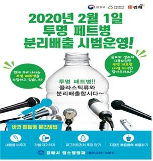 환경부(장관 조명래)는 국내 폐페트병도 고품질로 재활용할 수 있도록 ’무색 폐페트병 별도 분리배출 시범사업‘을 올해 2월부터 시행하고, 깨끗한 폐페트병 회수방법 마련을 위한 민관 협력을 강화할 예정이다. ’무색 폐페트병 별도 분리배출 시범사업‘은 서울, 부산, 천안, 김해, 제주, 서귀포 등 6개 지자체에서 이달부터 본격적으로 시행한다. 구체적으로 공동주택과 거점수거시설에는 무색 폐페트병 별도 수거함을 설치하고, 단독주택에는 무색 폐페트병을 따로 담아 배출할 수 있는 투명 봉투를 시범사업 기간에 배부하여 손쉽게 별도로 배출할 수 있도록 한다.