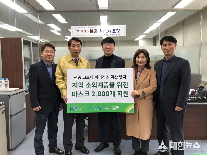 (대한뉴스 김기준 기자)=나눔을 통해 시민과 함께 가치를 창출하고 있는 지역기업 ㈜디에스엠알로 진대용 대표는 6일 초록우산 경북지역본부(본부장 김창연)를 통해 미세먼지 방지용 마스크 2,000개(200만원 상당)를 포항시에 기탁하였다.