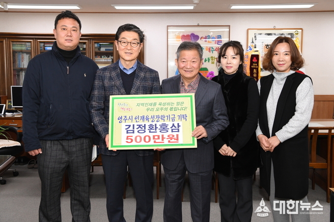 (대한뉴스 김기준 기자)=경북 영주시인재육성장학회(이사장 장욱현)는 2월 6일 김정환홍삼(대표 김정환)에서 500만원의 장학금을 기탁했다고 밝혔다.