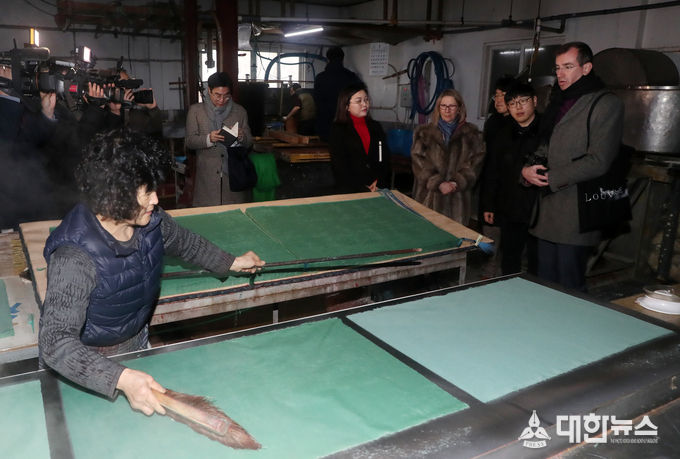 (대한뉴스 박청식 기자)=세계 3대 박물관인 프랑스 루브르박물관 전시와 보존·복원 총책임자들이 국가관광거점도시로 선정된 전주시의 한문화를 대표하는 전통한지를 직접 확인하기 위해 방문했다.