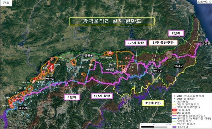 중앙사고수습본부는 광역울타리 밖에서 감염된 야생멧돼지가 발견된 상황을 엄중히 인식하고, 야생멧돼지에 대한 추가적 관리방안을 발표했다. 먼저 야생멧돼지의 남하를 차단하기 위해 춘천-소양강-인제 구간을 연결하는 3단계 광역울타리를 추가 설치할 계획이다. 화천에서 양구로 야생멧돼지의 동진을 차단하기 위해 3단계 광역울타리와 남방한계선을 남북으로 연결하는 양구 종단 울타리도 설치한다.