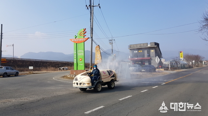 (대한뉴스 김기준 기자)=포항시농촌지도자연합회 기계면지회 회원 20명은 10일 신종코로나 바이러스 감염증 확산 방지를 위해 회원 20여 명이 SS기(농약살포기) 9대를 이용해 마을별 차단방역을 실시했다.