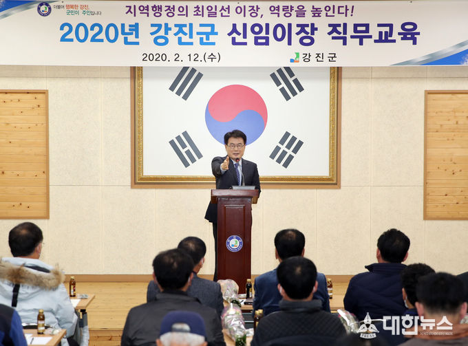 (대한뉴스 박청식 기자)=강진군은 지난 12일 군청 대회의실에서 올해 새로 임명된 이장 51명을 대상으로 역량강화 교육을 실시했다.