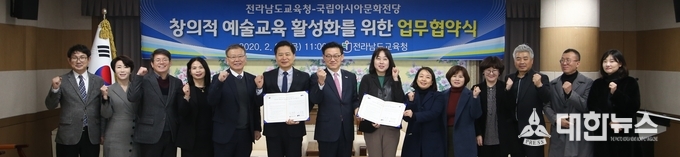 (대한뉴스 박청식 기자)=전라남도교육청이 국립아시아문화전당(전당장 직무대리 이진식)과 함께 창의적 예술교육 활성화와 지역 문화·예술 인재양성에 나섰다.
