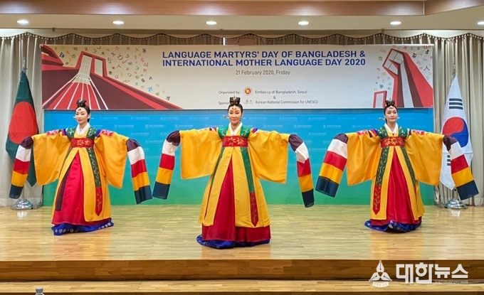 (대한뉴스 박청식 기자)=전라북도국제교류센터(센터장 이영호)는 2월 21일 금요일 주한 방글라데시 대사관 「국제 모어의 날」 행사에 전라북도 도립국악원과 함께 우리 전통 무용인 ‘춘앵전’ 과 ‘대금’ 연주로 한국의 멋과 전라북도를 알리는 계기를 마련했다.