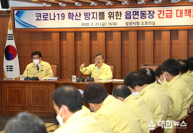 밀양시는 21일 밀양시재난안전대책본부에서 코로나19 대응 유관기관 긴급대책회의를 갖고 환자발생 방지를 위한 총체적 대책을 점검했다.