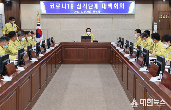 (대한뉴스 김기준 기자)=창녕군 재난안전대책본부(본부장 한정우 군수)는 코로나19 확산 방지 감염병 위기경보 단계가 ‘심각’으로 격상됨에 따라 24일 한정우 본부장 주재로 긴급 대책회의를 개최해 총력 대응태세를 재차 점검했다.