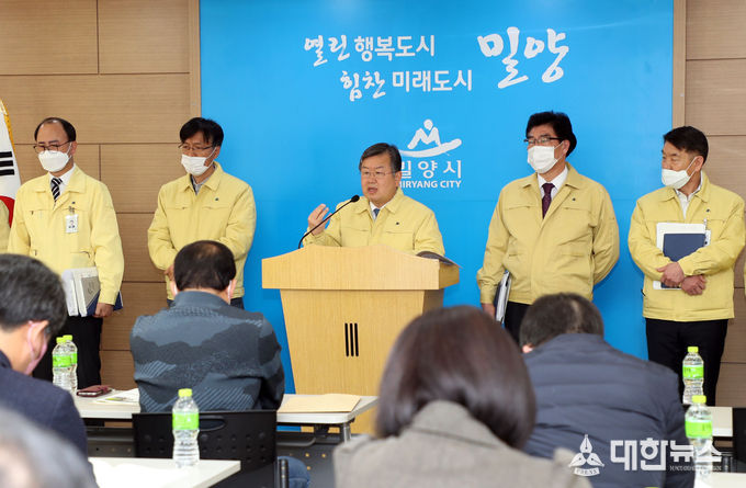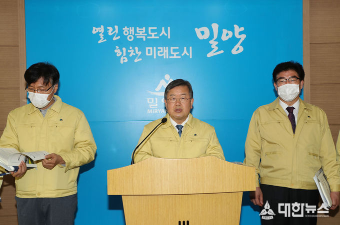 (대한뉴스 김기준 기자)=박일호 밀양시장이 24일 시청 브리핑룸에서 코로나19 밀양시 대응방안에 대해 기자회견을 가졌다.