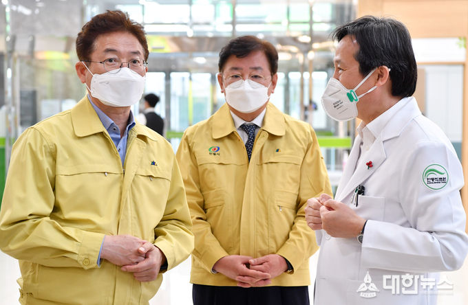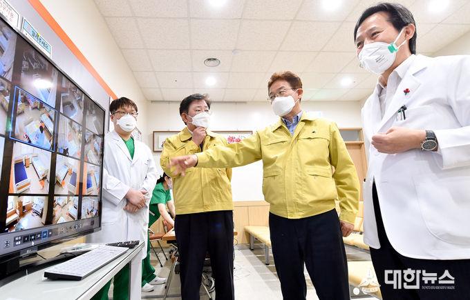 (대한뉴스 김기준 기자)=이철우 경상북도지사는 2월 26일(수) 오후 안동의료원을 찾아 코로나19 환자치료에 여념이 없는 의료진을 격려하고, 확진자 치료현장을 점검했다.
